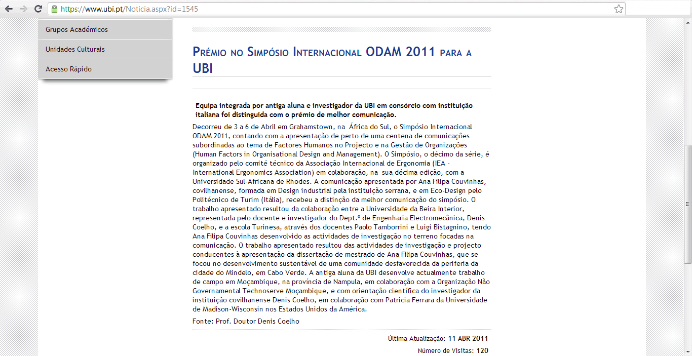In Denmark, award at ODAM - NES (Human Factors in Organizational Design and Management, and The Nordic Ergonomics and Human Factors Society) Conference